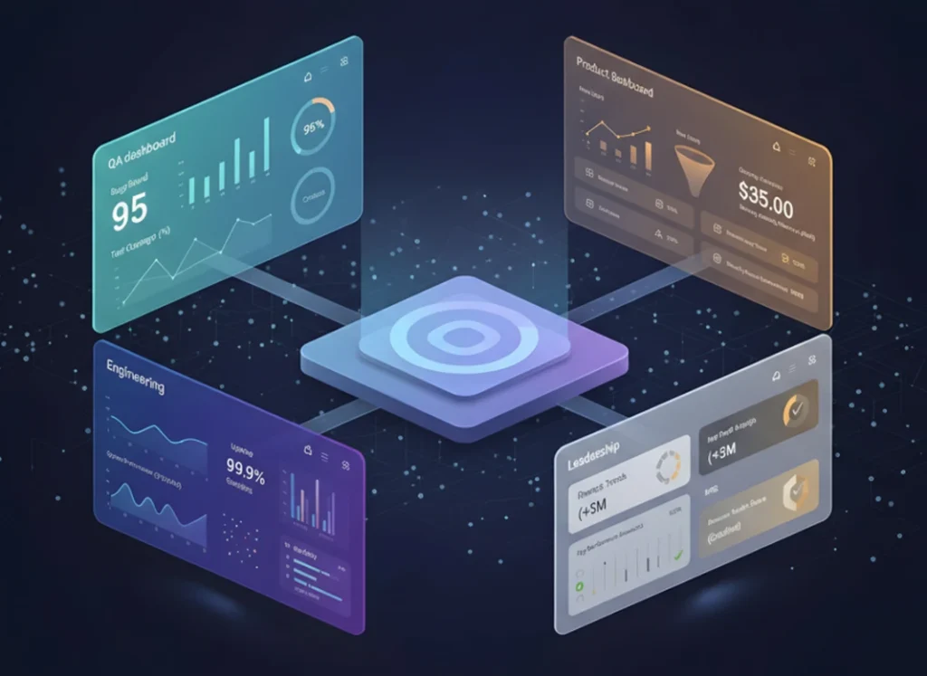 QA dashboards for testing quality and release readiness.