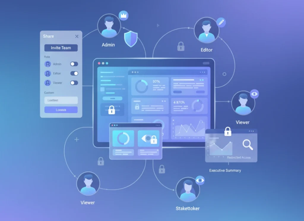 Share dashboards with teams or stakeholders.